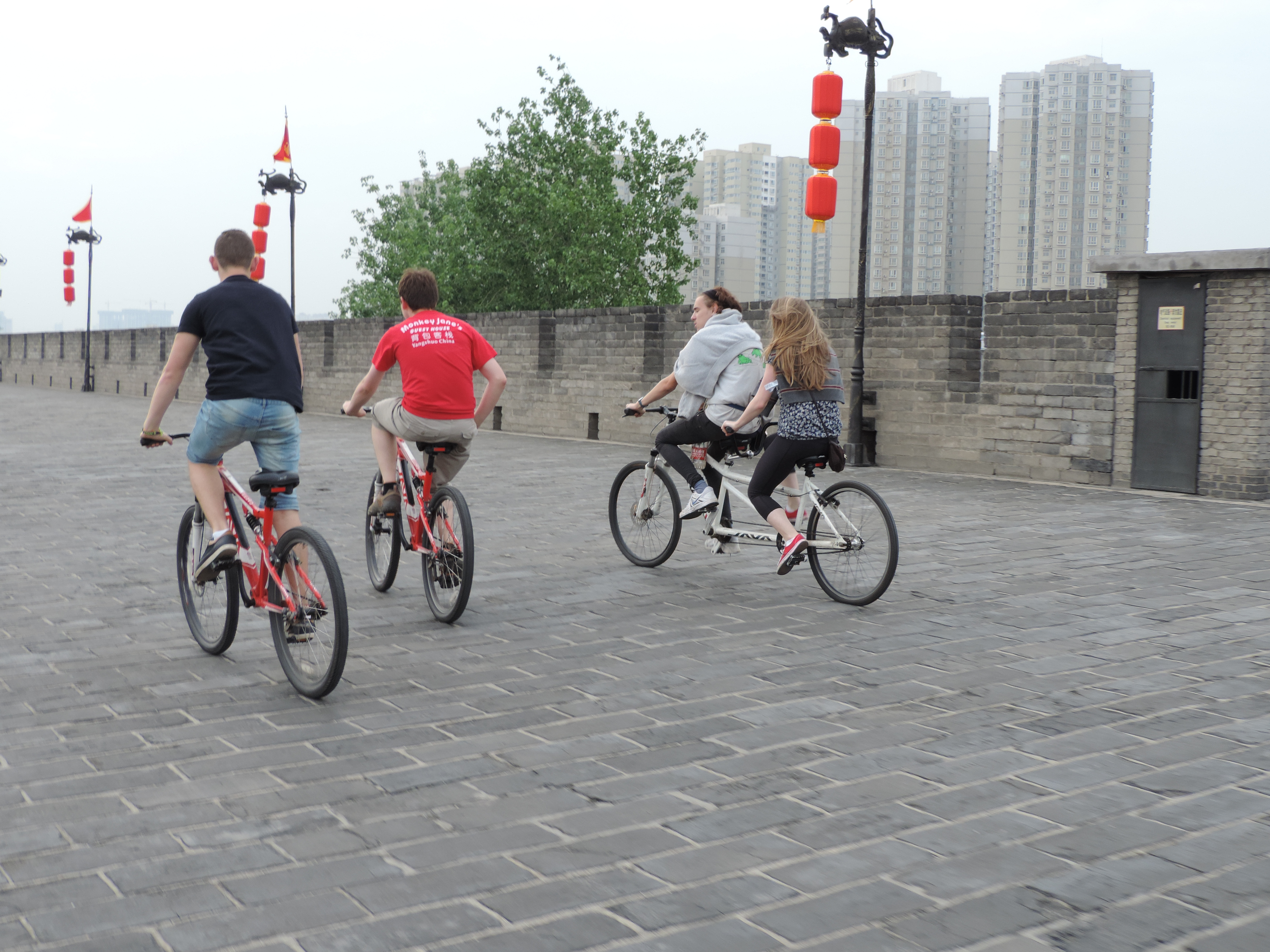 Xi’An is an important city as it is one of four ancient capitals. Aside from the Terracotta Warriors, it is famed for its’ ancient city walls, which we cycled around on tandems and looked out across the whole of the city, noticing the distinct lack of skyscrapers.