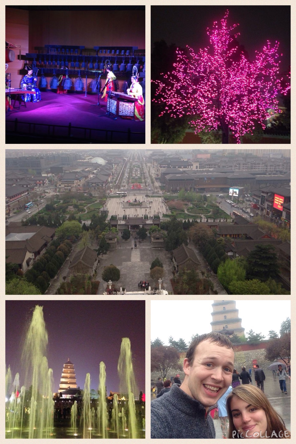 Xi’An has loads to offer, including; the Drum Tower and the Bell Tower, (where we were lucky enough to watch a traditional performance – top left corner), which are both located near to the ancient city walls. Then we took a bus to the Wild Goose Pagoda which provided great views of the city. We ended the day by watching the fountain show which was just beginning – we’d highly recommend seeing it.