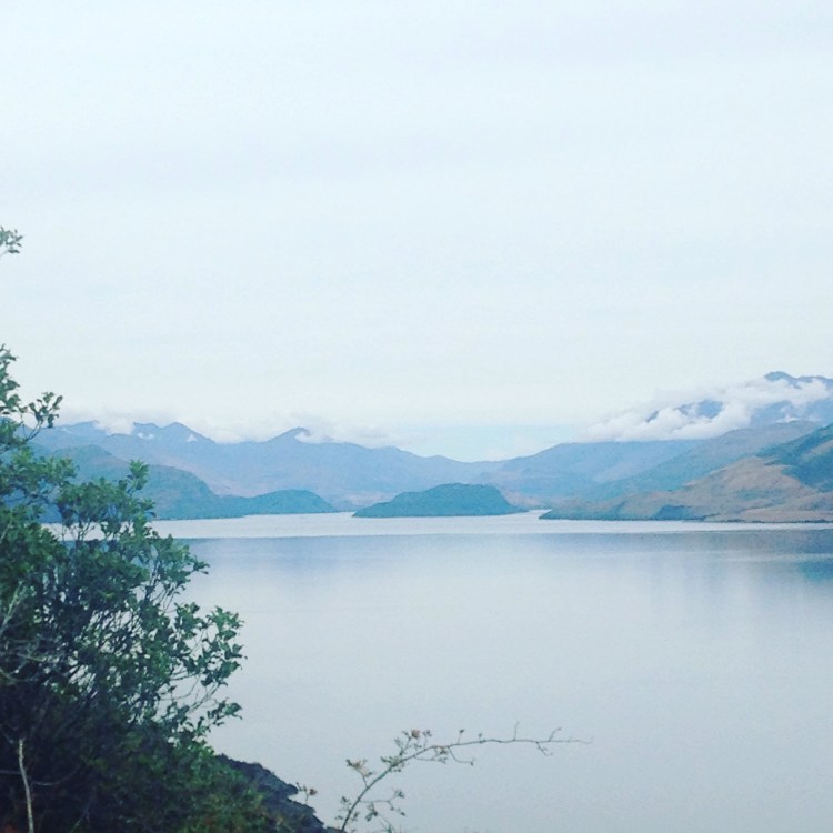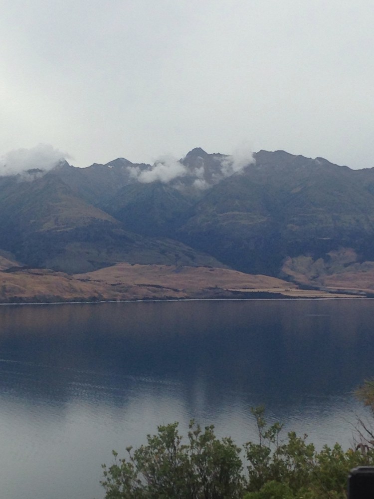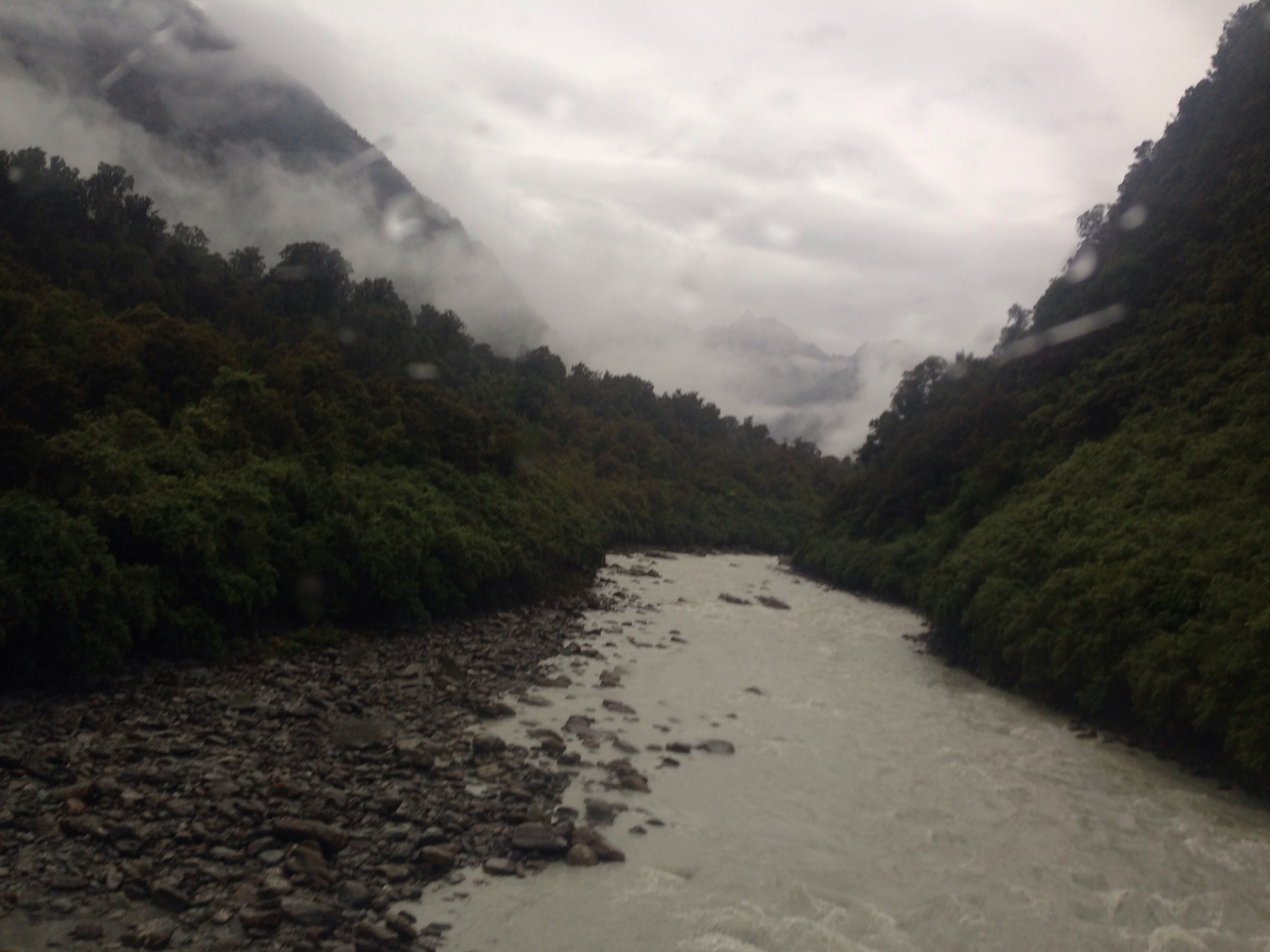 We’re driving past Mount Cook, the highest peak in New Zealand, but we can’t see it because of the low lying cloud. We also passed the fox glacier and didn’t see that either. We stopped at the lake for an hour and a half. It rained the entire time, and knowing how long we have left ahead of us, I opted to stay on the bus for the first time.