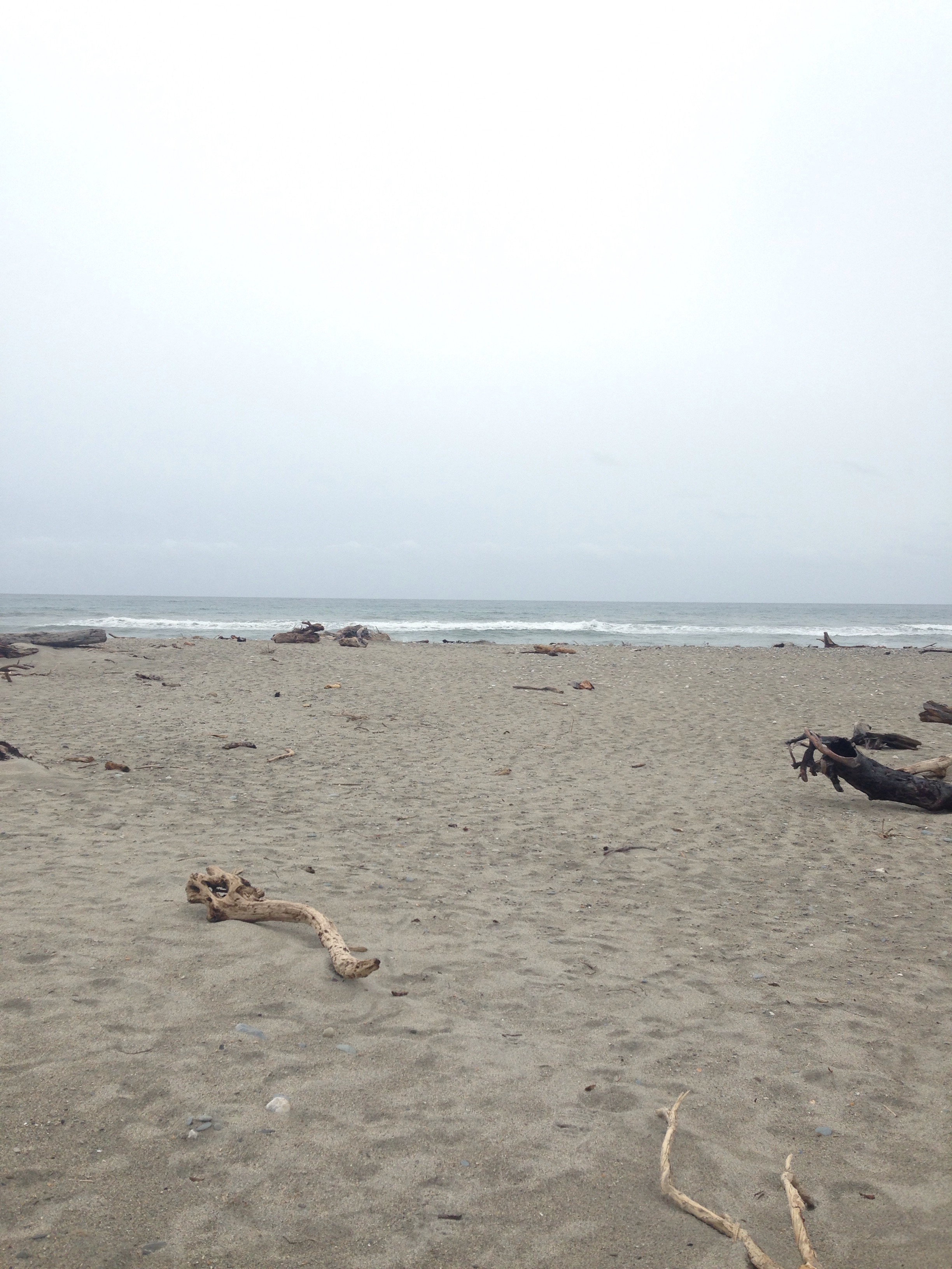 Driving along the west coast, past Bruce Bay. I imagine it’s fairly spectacular on a clear day, with the mountains to the left and clear ocean views to the right. As usual, my eyes are fixed on the sea optimistically hoping to spy some wildlife off in the distance.