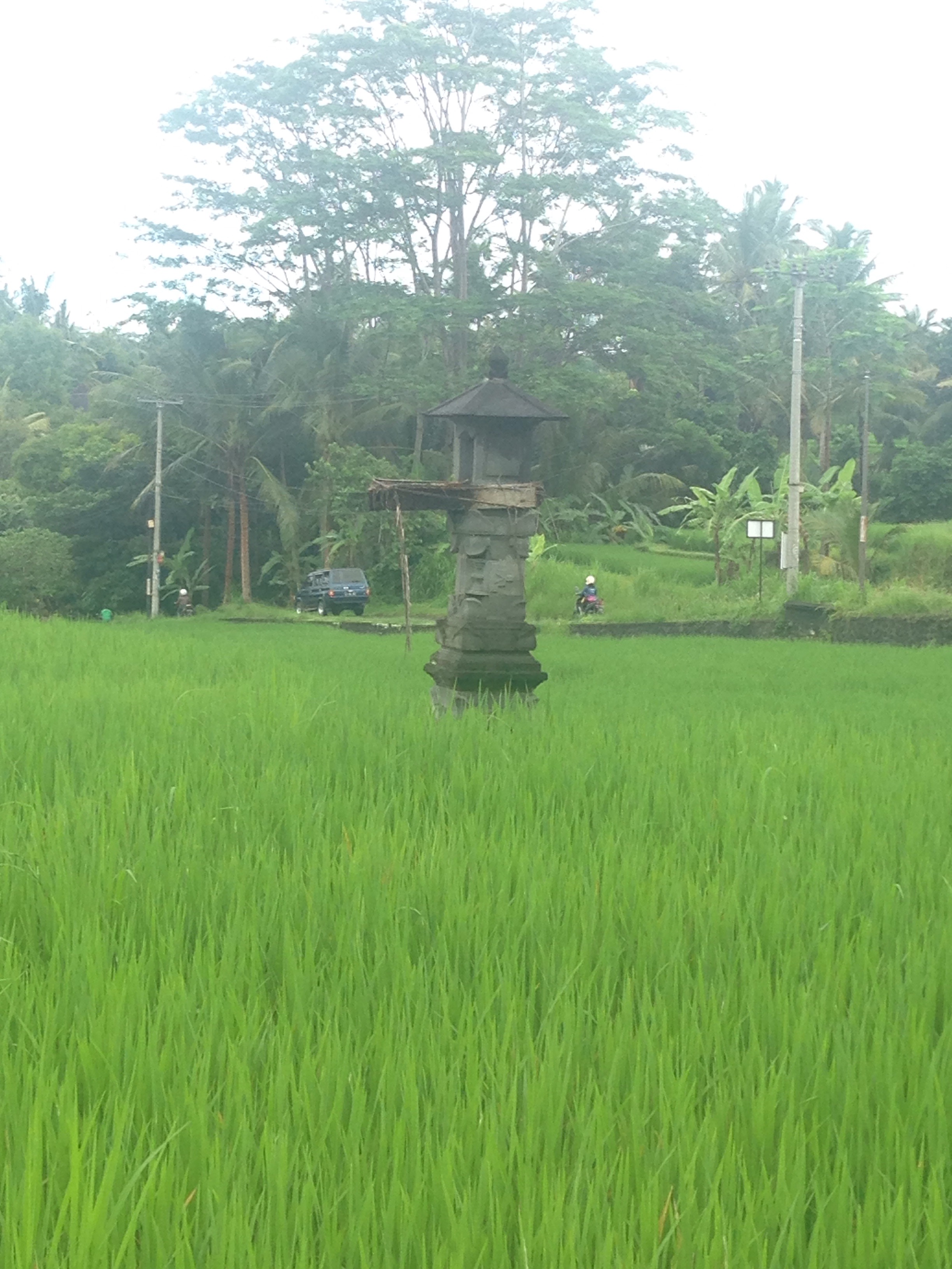 The Shrine in the centre is for the God of the Rice. However, we’re told the yellow leaves of the rice plants are a sign that the crop will not be good, because there is a small bug that has ruined it. Smaller than a mosquito, like an ant.
