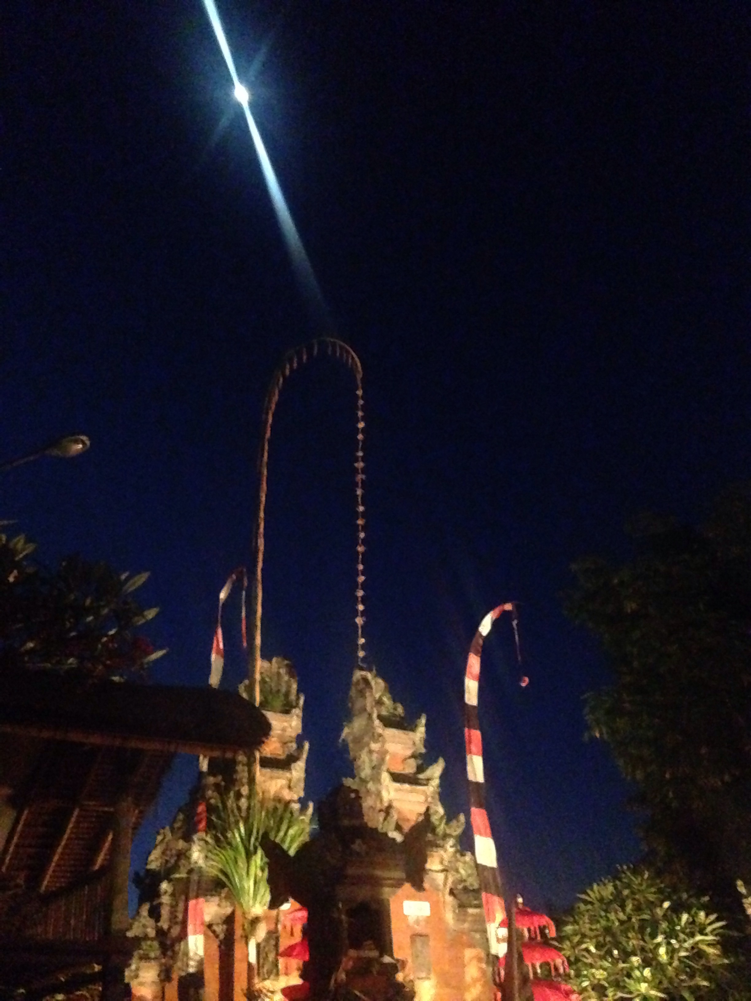 Balinese houses: the temple is always facing the north east because that is facing the highest building. Rooms to the East are for the people’s ceremony, west sleeping rooms, south is for eating. You can tell how many people are living in the compound by the number of kitchens (eg, 3 kitchens is 3 families).