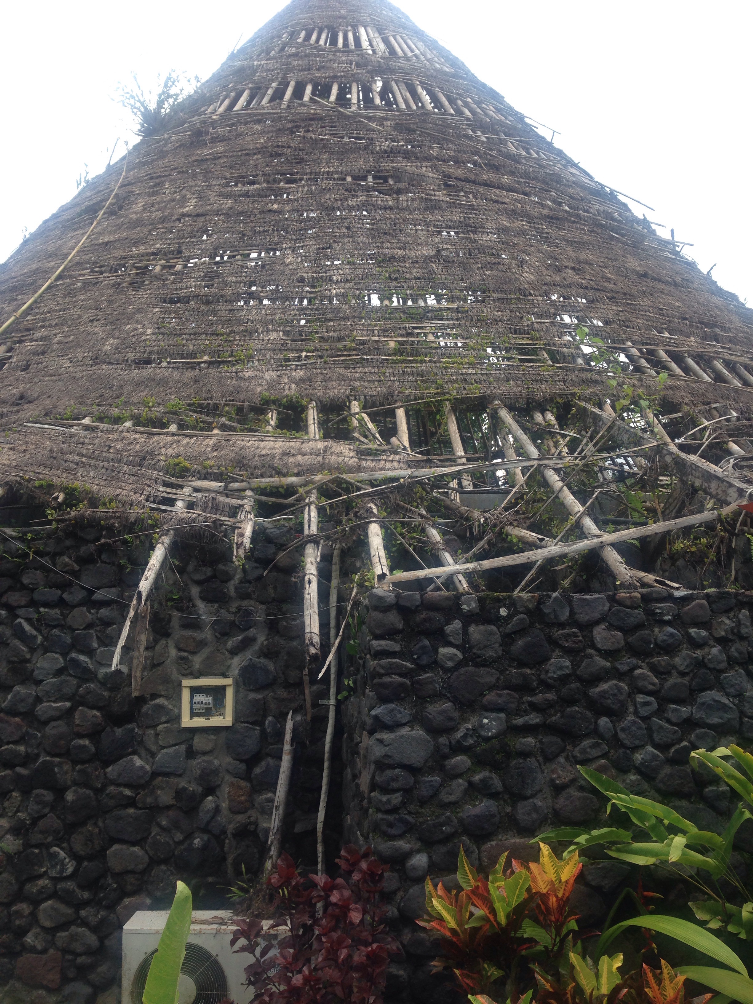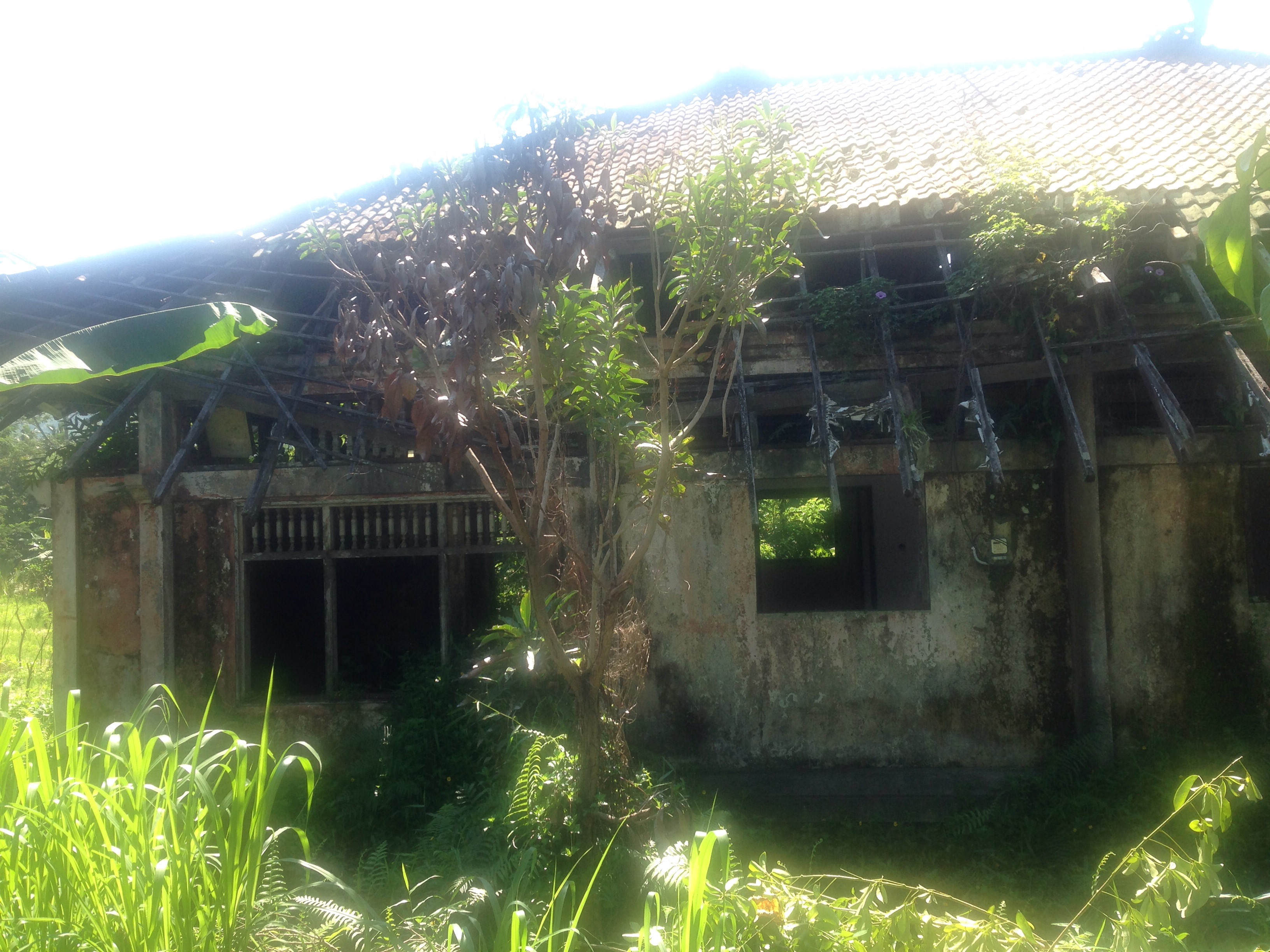 This used to be the biggest hotel in Sideman – it opened in 1996, with many rooms, but the US owner sold it back (or tried to sell it back?) to the people of the village but they didn’t use it so now it stands in disrepair. After 2005 it would have been too expensive to make the renovations. After 50 years, the land goes back to the people. It’s 3 hectares large. The walls disintegrated because they were made of bamboo.